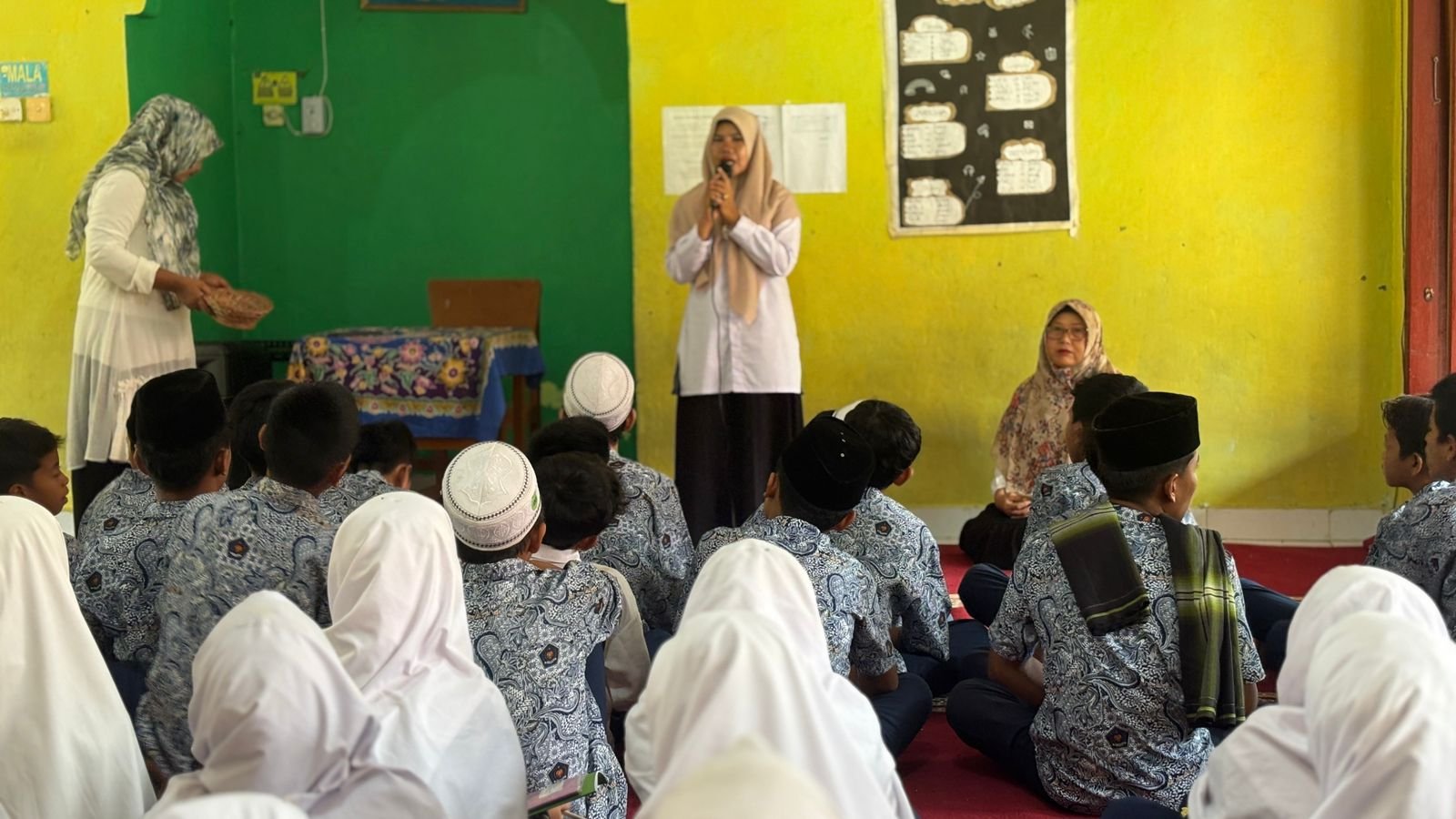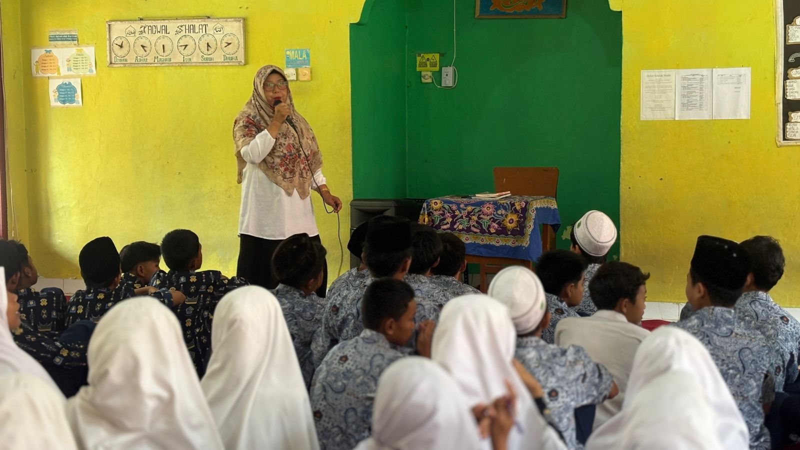 Materi pertama diisi dengan praktik Shalat Berjamaah, pembahasan tentang makmum masbuk, serta sujud sahwi yang dibimbing oleh Ibu Erimaiyulis, S.Pd dan Ibu Emiliza, S.Pd. Dalam sesi ini, siswa tidak hanya mendapatkan penjelasan teori, tetapi juga langsung mempraktikkan tata cara pelaksanaan shalat berjamaah yang benar sesuai tuntunan. Kegiatan ini bertujuan agar siswa memahami secara utuh prosedur ibadah serta mampu mengaplikasikannya dalam kehidupan sehari-hari.